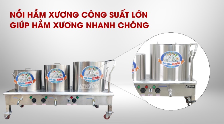 - Nồi hầm xương 40 lít công suất 4kW, đun sôi lượt nước đầu tiên trong 30-35 phút.