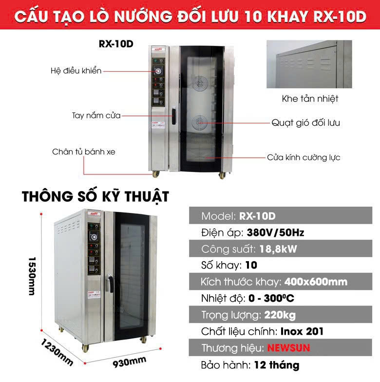 - 1 Ưu điểm vượt trội của lò nướng đối lưu 10 khay NEWSUN RX-10D