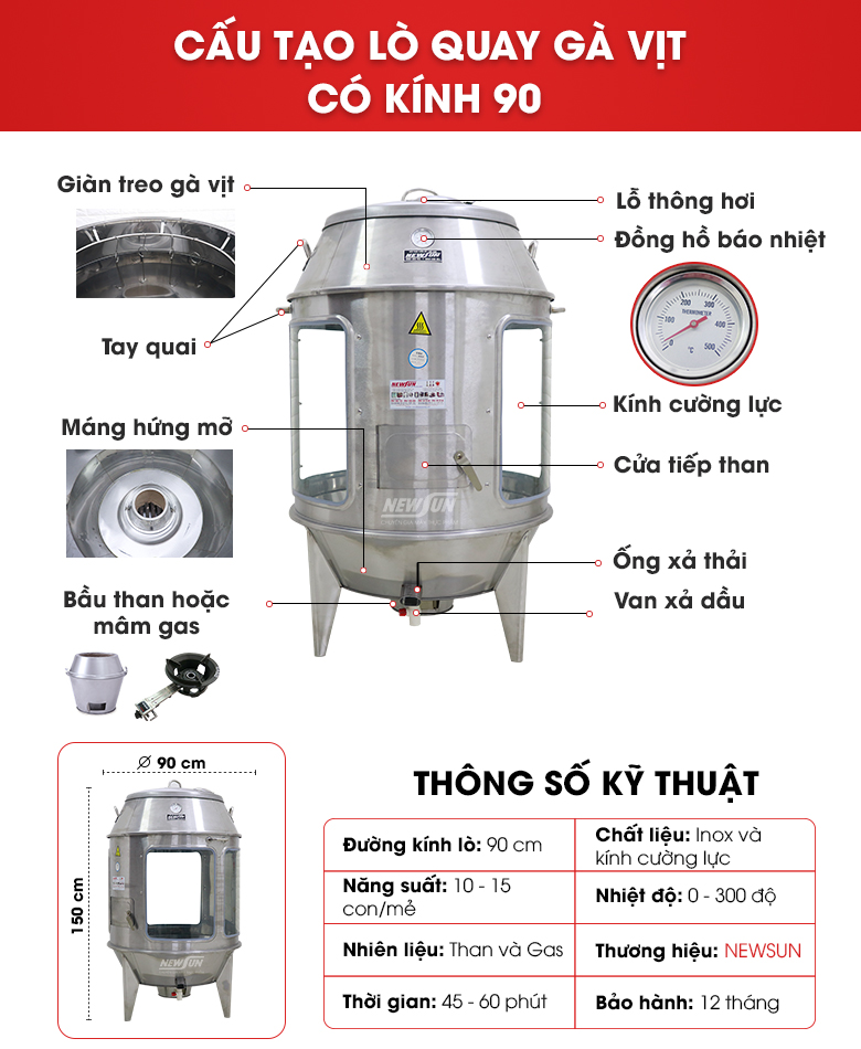 Tặng 15 móc, 15 xiên khi mua lò quay gà vịt NEWSUN