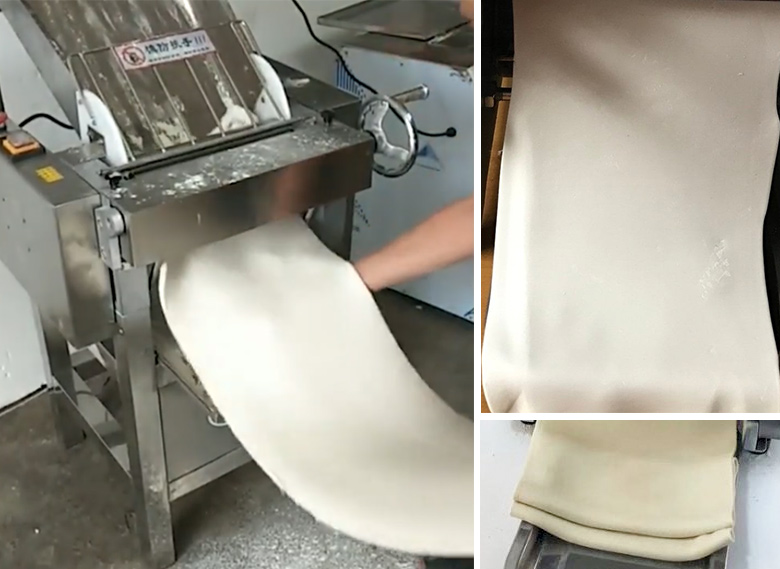 Máy có khả năng cán bột mỏng đều trong tích tắc. Trung bình mỗi giờ sẽ cán được khoảng 150kg bột mà chỉ cần một người đứng thả tấm bột vào máy. Thiết bị giúp các cơ sở kinh doanh tiết kiệm được rất nhiều thời gian lao động cũng như chi phí thuê nhân công. Thành phẩm bột bánh làm ra có độ đồng đều và sạch sẽ, an toàn vệ sinh thực phẩm.