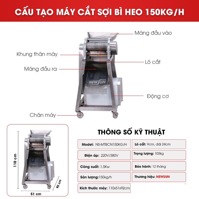 Khi mua sản phẩm máy cắt sợi bì heo 150kg/h tại NEWSUN, bạn sẽ nhận được rất nhiều lợi ích: