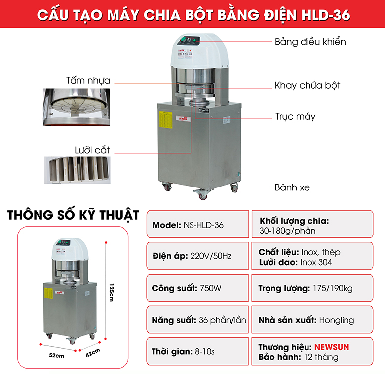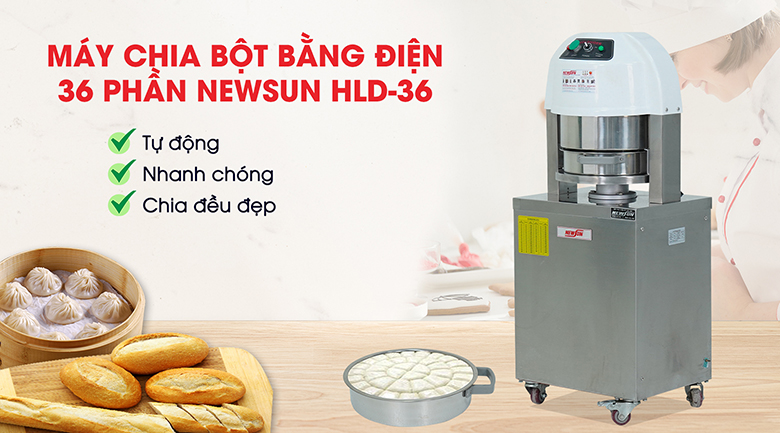 Nếu bạn đang tìm kiếm một thiết bị để chia bột trong dây chuyền sản xuất bánh thì máy chia bột bằng điện HLD-36 chính là một gợi ý hoàn hảo. Máy vận hành hoàn toàn tự động, chia bột thành 36 phần bằng nhau trong chưa đến 10 giây. Sản phẩm được NEWSUN nhập khẩu nguyên chiếc, phân phối chính hãng 100%.