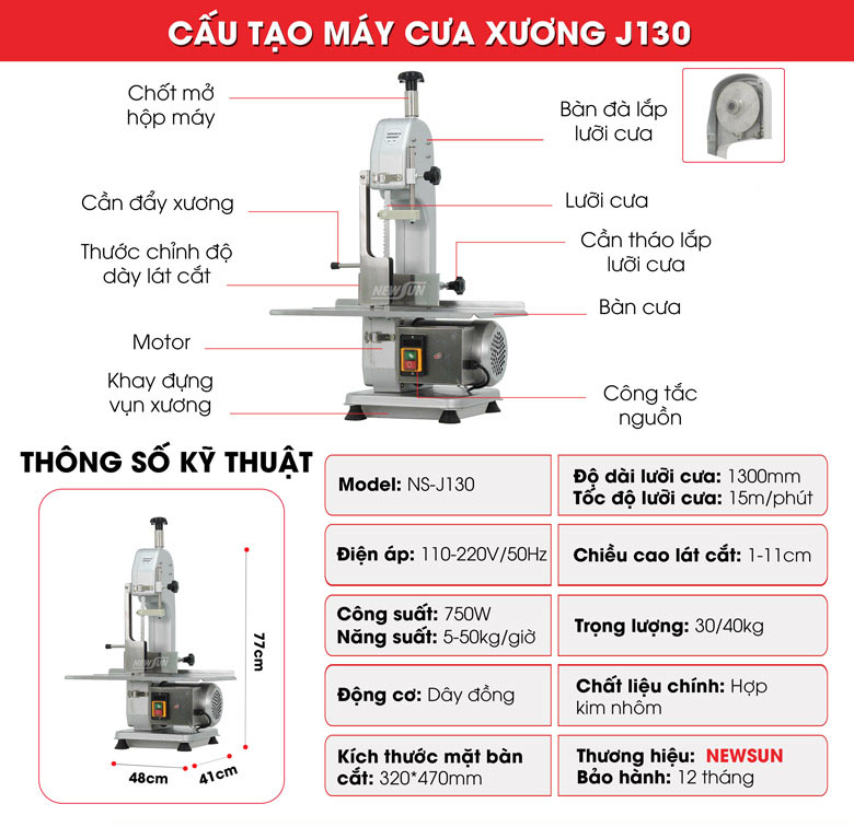 Sản phẩm máy cưa xương cắt cá J130 được NEWSUN nhập khẩu nguyên chiếc, chính hãng tại nhà máy sản xuất, đảm bảo chất lượng cao cùng mức giá thành tốt nhất.