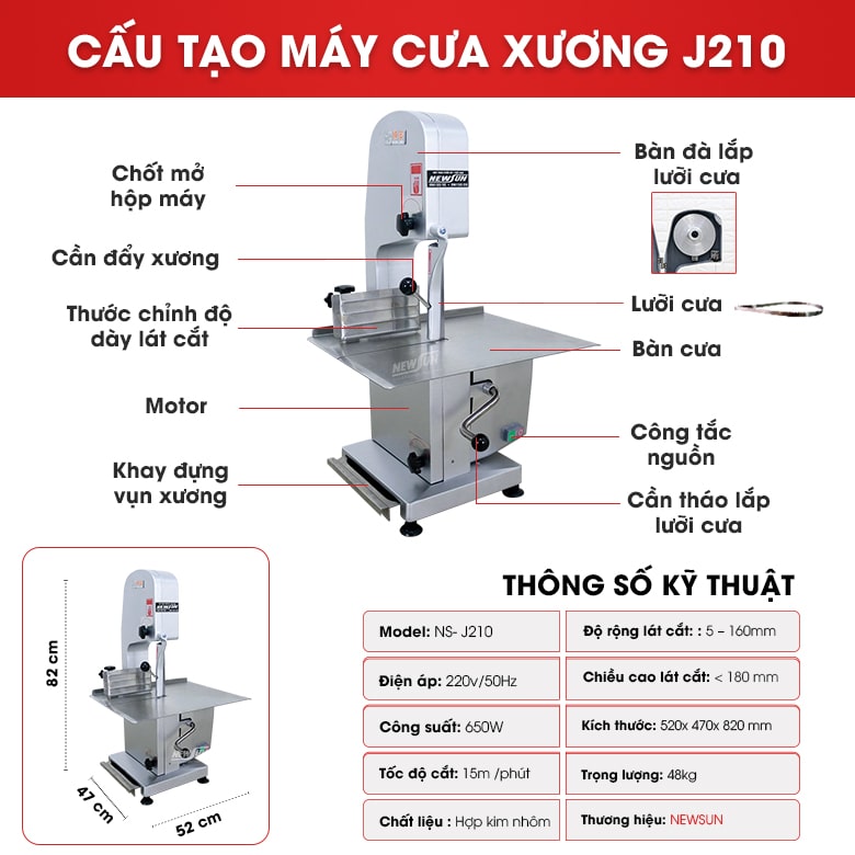 Có thể thấy, máy cưa xương vỏ hợp kim nhôm J210 có thiết kế đơn giản, gọn gàng nhưng lại rất tiện ích, đảm bảo được hiệu năng khi sử dụng cho các quán ăn, nhà hàng – khách sạn, bếp ăn công nghiệp, siêu thị và các cơ sở chế biến quy mô công nghiệp vừa và lớn.