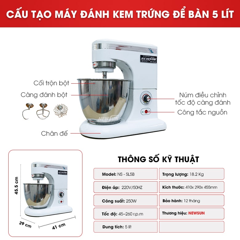 Mua máy đánh kem trứng để bán 5 lít NEWSUN chất lượng cao, giá tốt