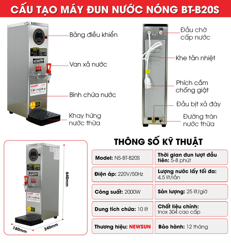 - 3 Đặt hàng máy đun nước nóng BT-B20S chính hãng, giá tốt tại NEWSUN
