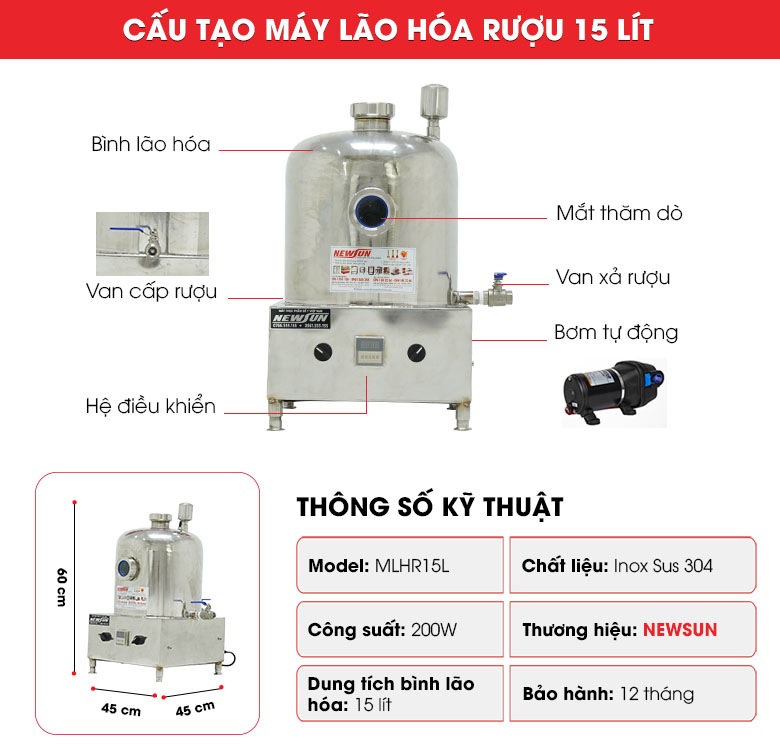 Máy lão hoá rượu 15 lít NEWSUN – Chính hãng, Giá tốt