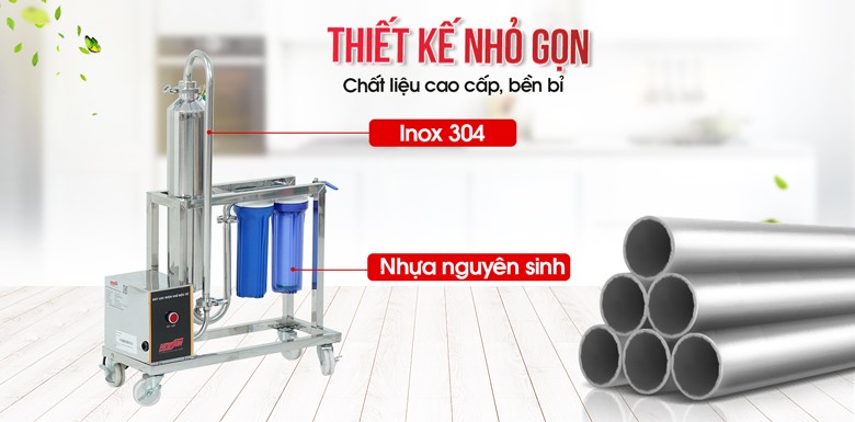 Máy lọc rượu khử độc tố 50l có thiết kế nhỏ gọn (kích thước 650x250x935mm), không chiếm nhiều diện tích, dễ dàng đặt trong xưởng sản xuất, cửa hàng hoặc hộ gia đình.