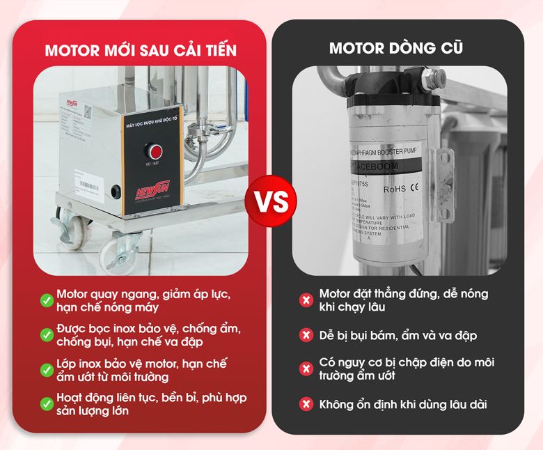 Motor cải tiến mới, bọc inox – Bền bỉ hơn