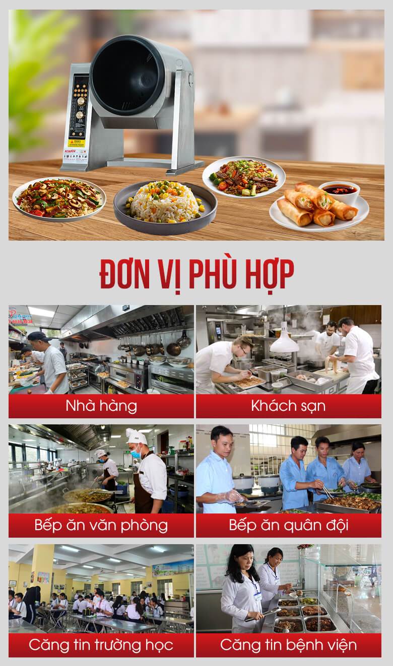 Thiết bị này phù hợp với mọi bếp ăn công nghiệp như nhà hàng, khách sạn, quán ăn , căng tin trường học, bếp ăn quân đội, xí nghiệp.