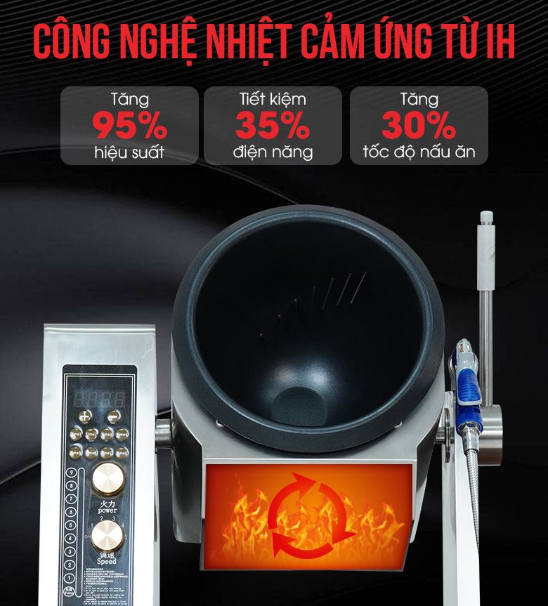 Công nghệ này không những làm tăng hiệu suất sử dụng lên đến 95% mà còn tiết kiệm 35% chi phí nhiên liệu và tăng tốc độ nấu hơn nhanh hơn 30%. Đặc biệt, nhiệt không ngọn lửa giảm thiểu khói dầu, tạo môi trường bếp an toàn và lành mạnh.