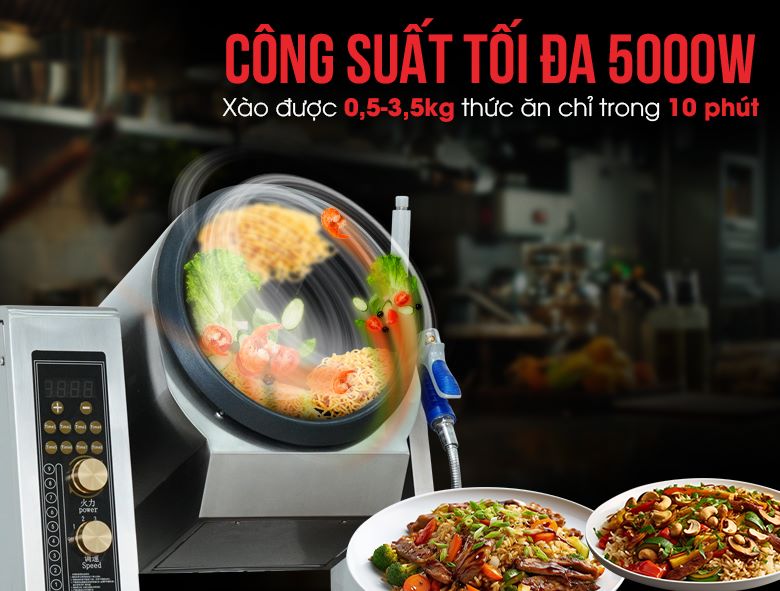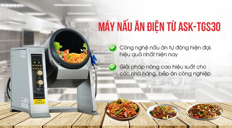 Với công suất tối đa 5000W và dung tích chứa chảo lên tới 4-6 lít, máy nấu ăn tự động ASK-TGS30 có thể nấu được 0,5-3,5kg thức ăn trong 10 phút.