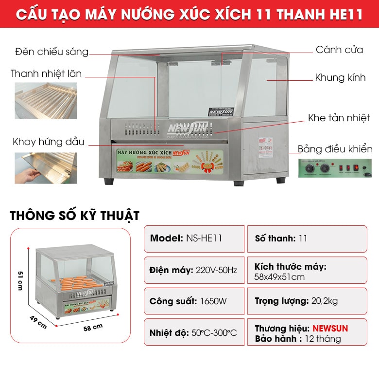 Lợi ích khi mua máy nướng xúc xích 11 thanh HE11 NEWSUN