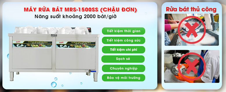 - 1.4 Máy rửa bát siêu âm MRS-1500SS chậu đơn tiết kiệm điện và nước