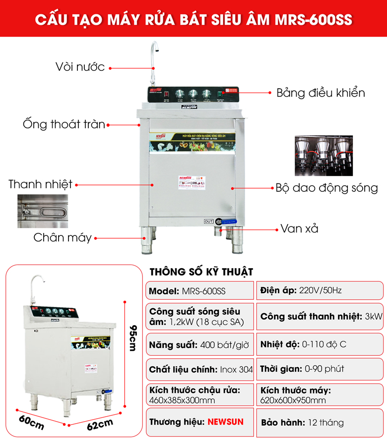 - 4 Mua máy rửa bát siêu âm MRS-600SS tại NEWSUN – Đảm bảo chất lượng, giá tốt