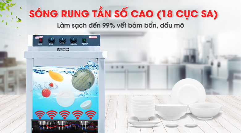 Giao diện điều khiển hoàn toàn bằng tiếng Việt, cho phép người dùng điều chỉnh dễ dàng các thông số như thời gian gia nhiệt, nhiệt độ nước và thời gian hoạt động của sóng siêu âm. Chỉ cần vài thao tác đơn giản, máy có thể làm sạch hàng trăm bát đĩa, thay thế hiệu quả công việc của 2-3 người lao động thủ công.