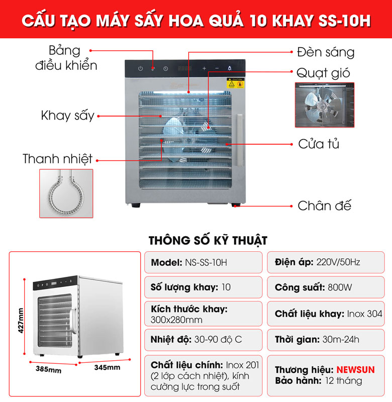 Mua máy sấy hoa quả 2 lớp 10 khay SS-10H chính hãng, giá tốt tại NEWSUN