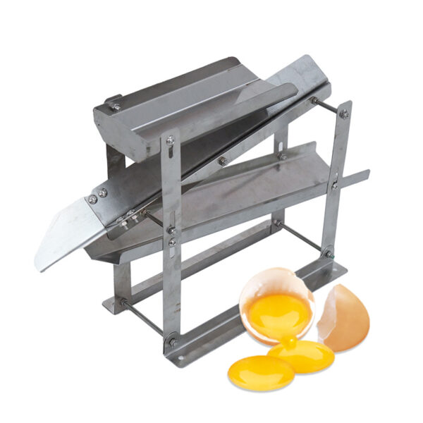Khác với các mẫu máy đập trứng công nghiệp trên, dụng cụ tách lòng đỏ trứng lại là thiết bị thủ công, giá thành rẻ, năng suất nhỏ, phù hợp với nhu cầu sử dụng của các gia đình đông thành viên, những tiệm bánh nhỏ hoặc các căng tin phục vụ ít suất ăn.