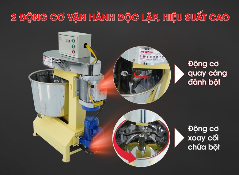 Trộn bột mạnh mẽ nhờ trang bị 2 động cơ dây đồng hoạt động độc lập