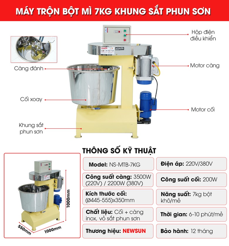 Mua máy trộn bột mì 7kg khung sắt phun sơn chính hãng NEWSUN