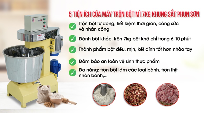 Những tiện ích nổi bật mà máy trộn bột mì 7kg khung sắt phun sơn mang lại
