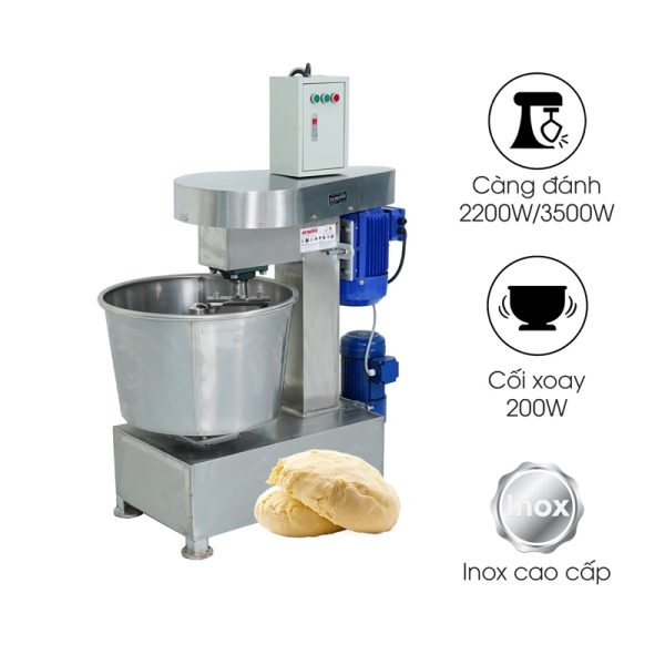 Máy trộn bột hay máy nhào bột, máy đánh bột là thiết bị chuyên dùng để trộn nhào bột mì tới độ mịn và độ kết dính phù hợp, thay thế công đoạn nhào bột bằng tay tốn nhiều công sức, thời gian.