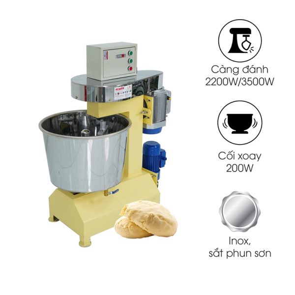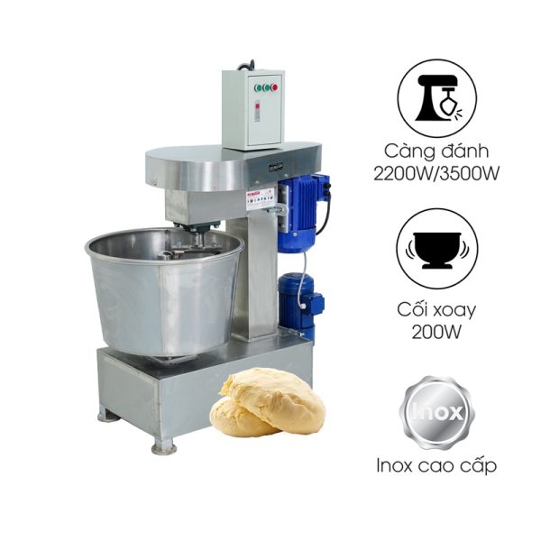 Máy trộn bột mì là trợ thủ đắc lực không thể thiếu trong dây chuyền sản xuất của nhiều cơ sở kinh doanh làm bánh mì, bánh ngọt. Chiếc máy này không chỉ cho khả năng trộn bột nhanh chóng, năng suất cao giúp tiết kiệm tối đa công sức thời gian mà còn đem lại thành phẩm khối bột mịn đều, kết dính tốt, đạt tiêu chuẩn chất lượng cao hơn hẳn các cách làm thủ công.