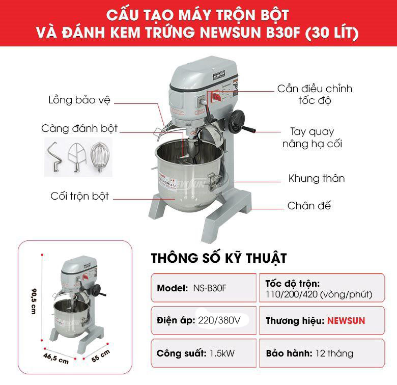 - 5 NEWSUN – Địa chỉ cung cấp máy trộn bột đánh kem trứng B30F giá tốt, chất lượng cao