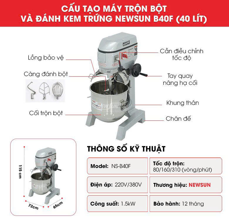 - 5 NEWSUN – Địa chỉ cung cấp máy trộn bột đánh kem trứng B40F giá tốt, chất lượng cao