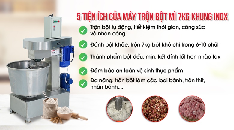 Ưu điểm nổi bật của máy trộn bột mì 7kg khung inox