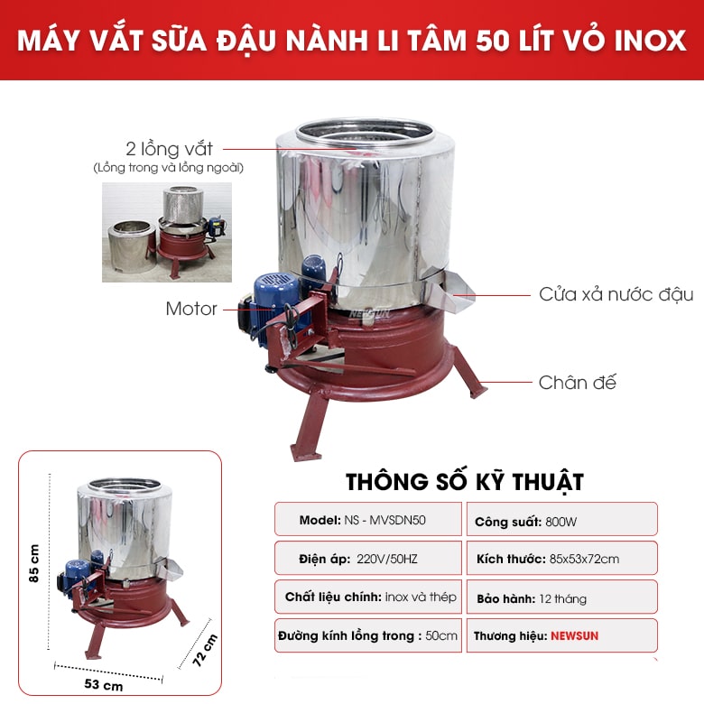 Mua máy vắt đậu nành li tâm 50 lít chất lượng cao, giá tốt tại NEWSUN
