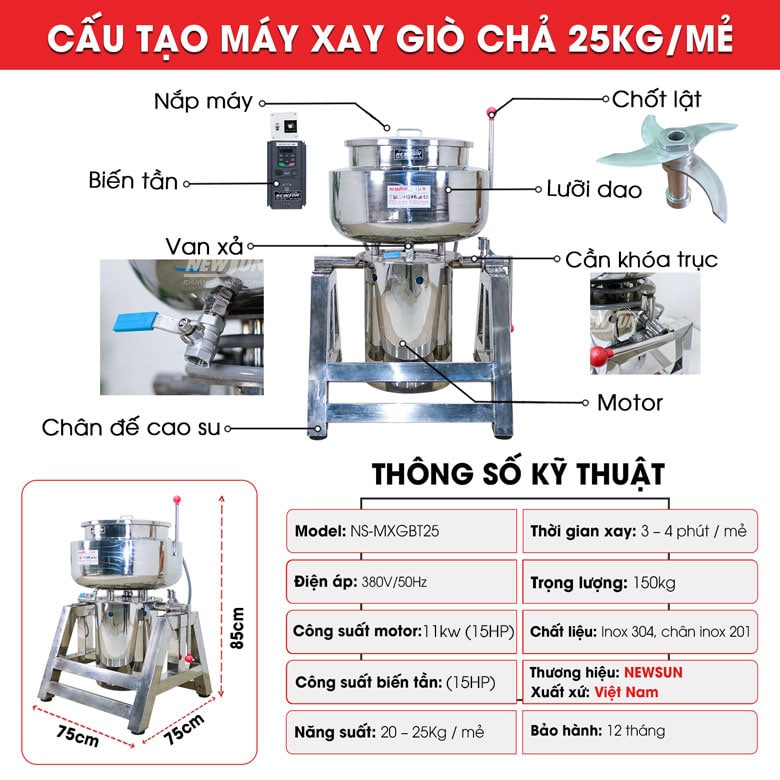 Ưu điểm vượt trội trong thiết kế của máy xay giò chả 25kg chính hãng NEWSUN