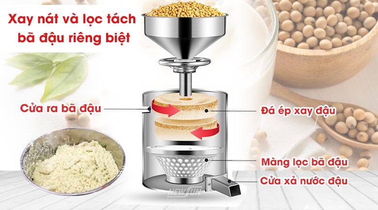 - 2 viên đá xay có độ nhám và lực ép phù hợp sẽ làm đậu nành được xay nhuyễn.