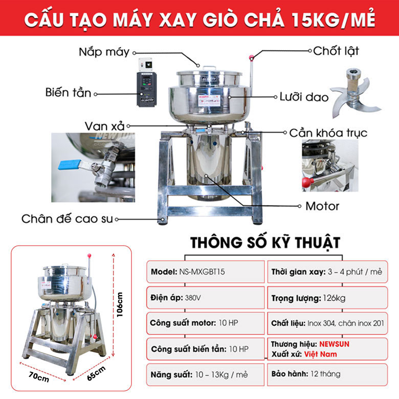 Khi mua máy xay giò chả 15kg tại NEWSUN, khách hàng sẽ được đảm bảo: