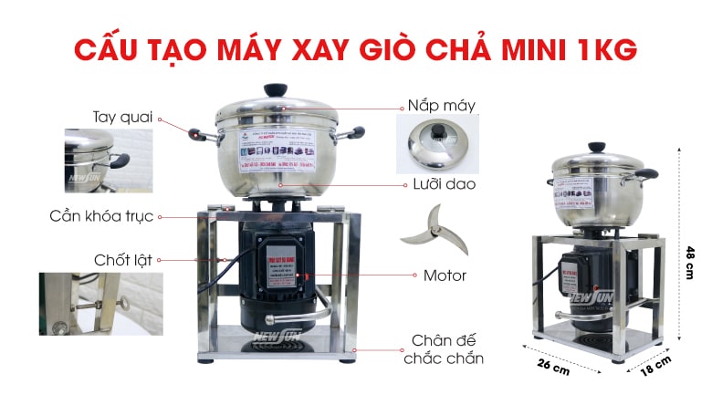 Thiết kế nổi bật của máy xay giò chả 1kg NEWSUN