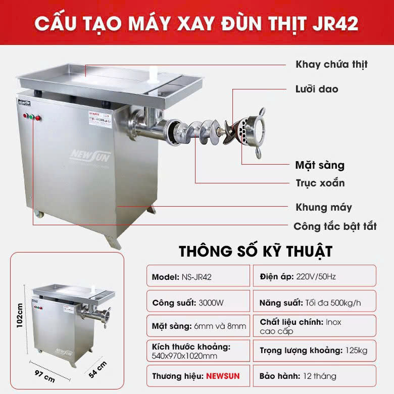 Mua máy đùn thịt công nghiệp JR 42 chính hãng, giá tốt tại NEWSUN