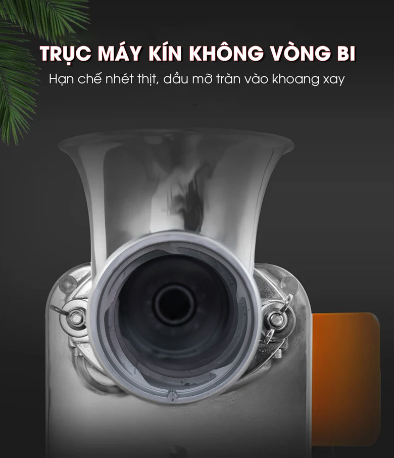 Như mẫu cũ trước đây, đầu máy có vòng bi nên dễ bị gỉ sét và đầu máy dễ gãy, dẫn đến dầu mỡ động cơ tràn vào khoang xay thịt. Máy xay đùn thịt RYH-32S mới cải tiến có đầu máy inox thiết kế không ổ trục nên không cần lo lắng về việc thay thế ổ trục trong những lần bảo trì, sửa chữa sau này. Đồng thời loại bỏ rủi ro dầu mỡ ở ổ trục rỏ rỉ vào khoang xay thực phẩm. Mặt khác, trục máy thiết kế kín hơn, hạn chế tình trạng bị nhét thịt vào bên trong.