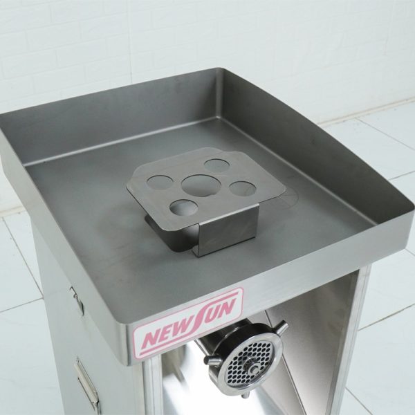 - Khay nguyên liệu rộng rãi, có thể xếp được lượng lớn thịt lên trên để thao tác cho thuận tiện, phù hợp với các cơ sở chế biến thực phẩm lớn. Khay hay cũng chính là nắp máy có thể tháo rời dễ dàng để vệ sinh hoặc xử lý sự cố khi cần.