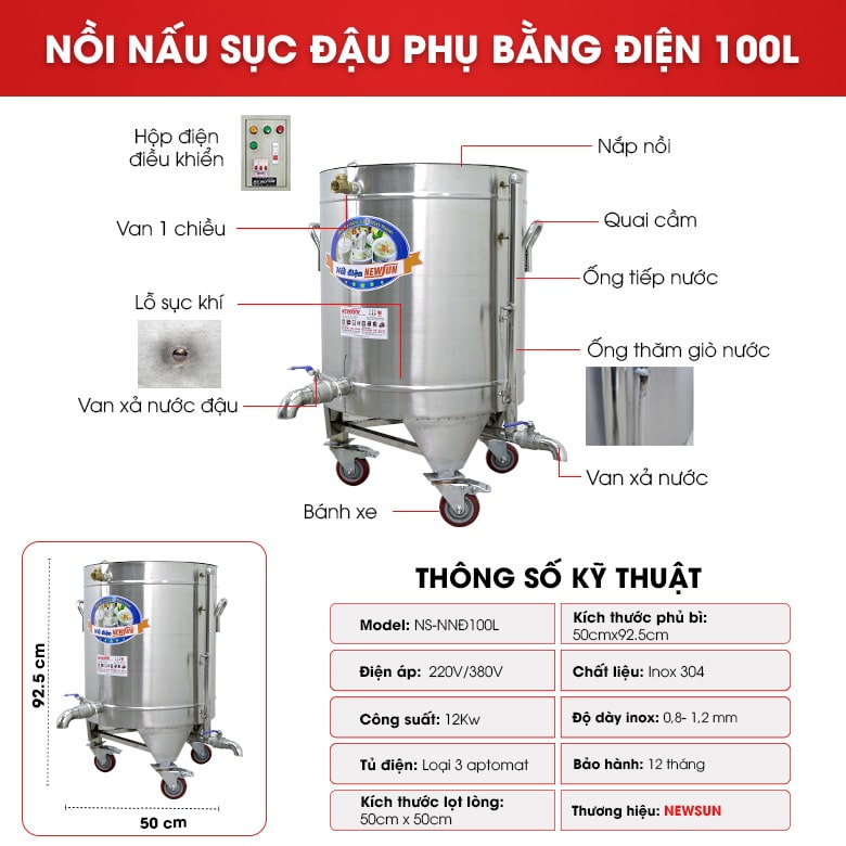 Mua nồi nấu đậu bằng điện 100L NEWSUN chính hãng chất lượng cao, giá tốt