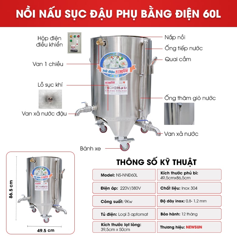 Mua nồi nấu đậu bằng điện 60L NEWSUN chính hãng chất lượng cao, giá tốt