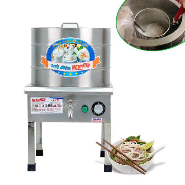 Sử dụng nồi nấu phở bằng điện là bí kíp giúp mọi quán phở kinh doanh hiệu quả – tiết kiệm chi phí. NEWSUN xin giới thiệu mẫu nồi nấu phở điện liền 60 lít chuyên dùng để nấu nước lèo hoặc ninh hầm xương cho các quán phở quy mô trung bình.
