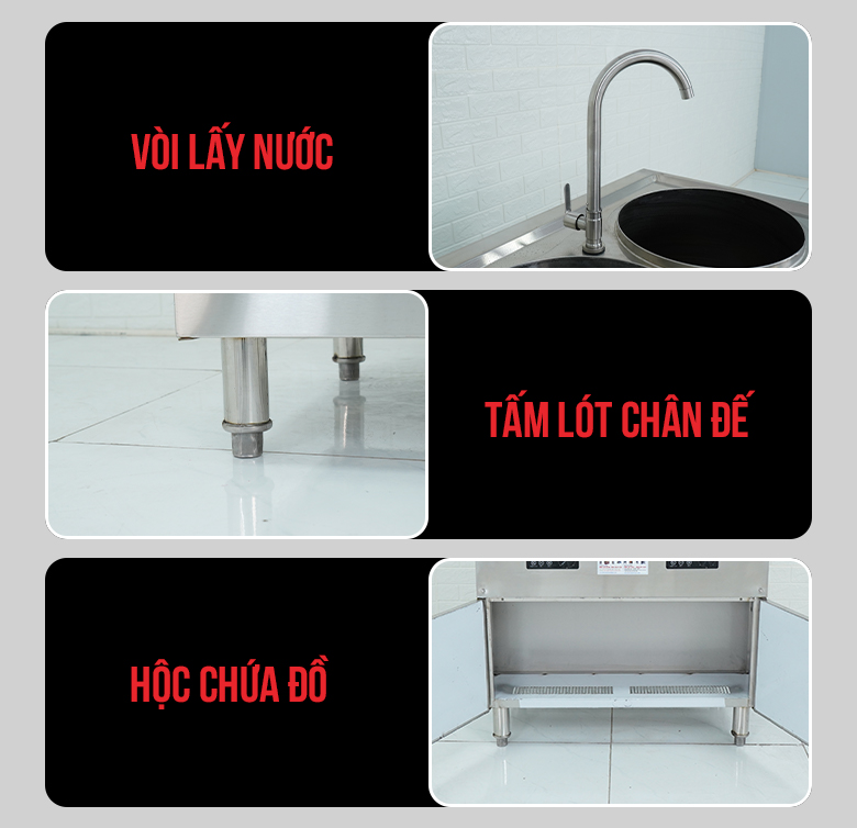 - Hộc chứa đồ: Lưu trữ dụng cụ gọn gàng, tiết kiệm không gian.