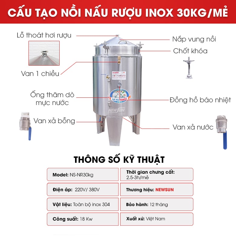Mua nồi nấu rượu 30kg/mẻ chính hãng liên hệ ngay với NEWSUN