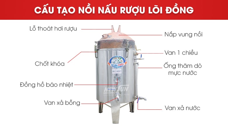 Nồi nấu rượu lõi đồng được NEWSUN trực tiếp sản xuất và phân phối ra thị trường. Sản phẩm có thiết kế hiện đại, đi kèm nhiều tính năng tiện lợi để mang đến trải nghiệm tốt nhất cho người dùng.