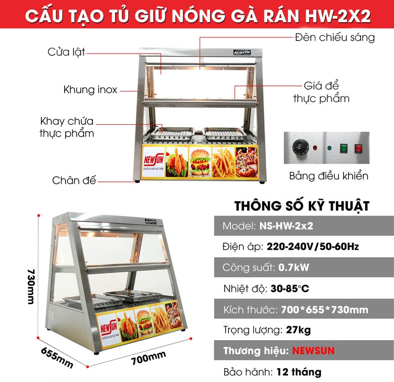 Lưu ý khi vận hành tủ giữ nóng gà rán HW-2×2