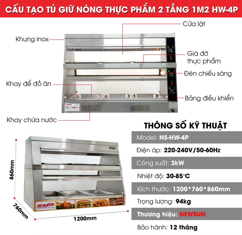 Bạn muốn thức ăn luôn giữ được hương vị thơm ngon và nóng như vừa chế biến? Bạn muốn tìm thiết bị bảo quản và trưng bày đồ ăn tốt, không để đồ ăn bị nguội, cứng và đảm bảo vệ sinh thực phẩm. Tủ giữ nóng thực phẩm 2 tầng 1m2 HW-4P sẽ giải quyết vấn đề này với khả năng giữ nóng đa dạng các các loại đồ ăn mà không làm ảnh hưởng đến hương vị, bền bỉ và tiết kiệm điện.