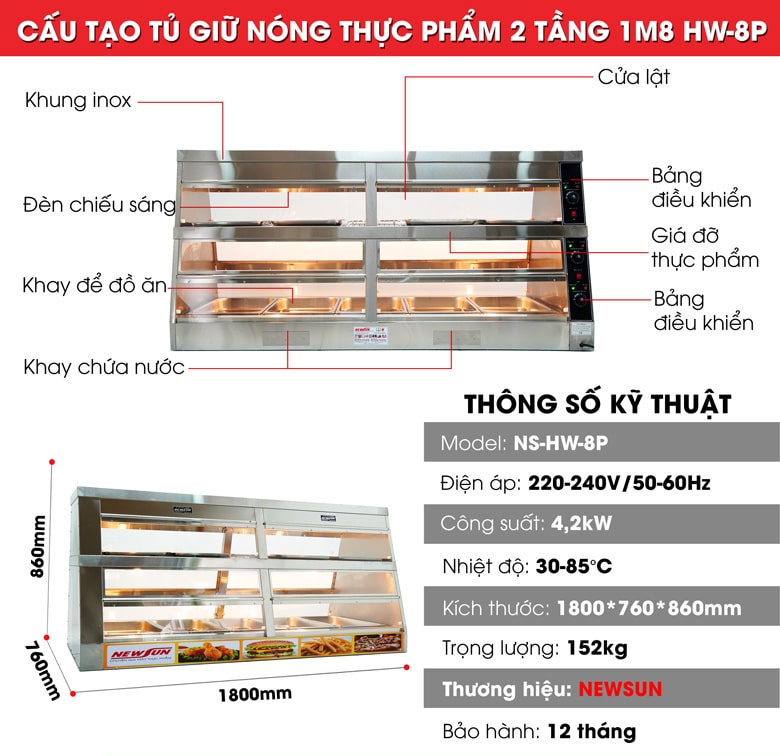 Nếu cần thêm thông tin hoặc muốn biết giá tủ giữ nóng thực phẩm 2 tầng 1m8 HW-8P, bạn hãy liên hệ tới hotline để được hỗ trợ sớm nhất nhé!