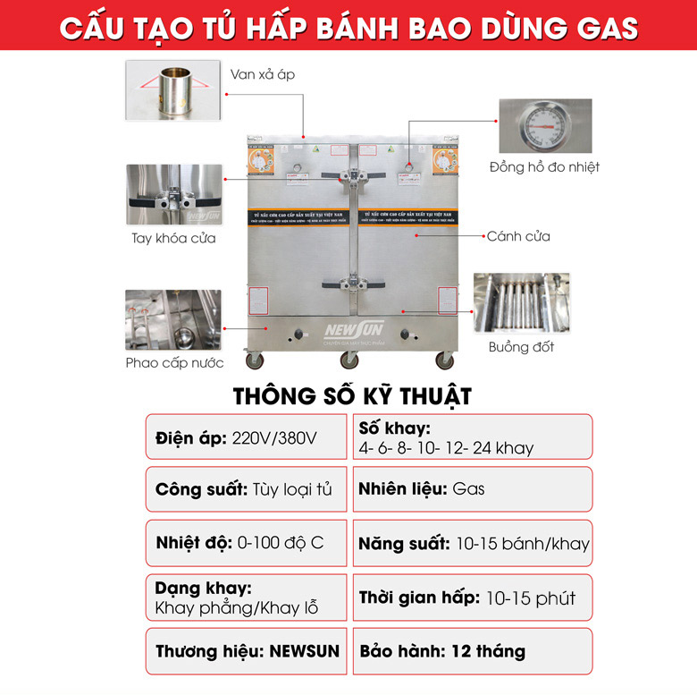 Tính năng nổi bật của tủ hấp bánh bao dùng gas NEWSUN