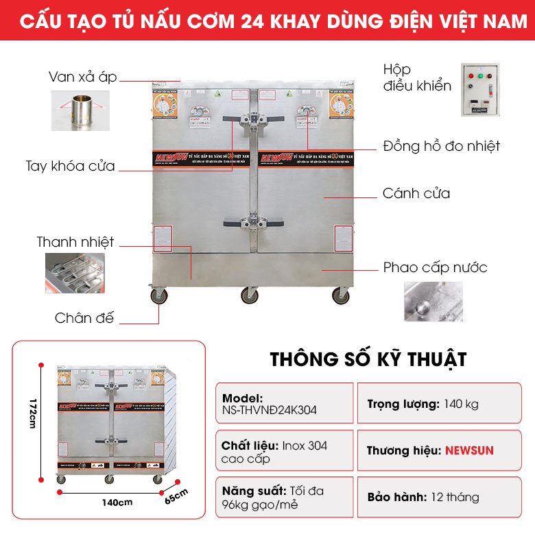 - 4 Đặt hàng tủ nấu cơm 24 khay dùng điện Việt Nam chính hãng tại NEWSUN