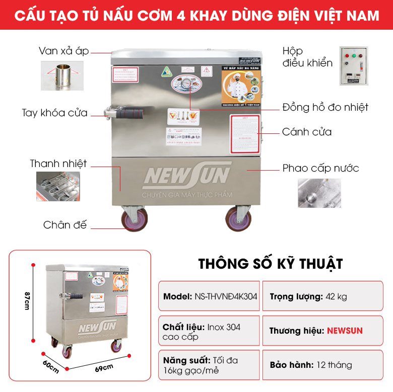 - 4 Đặt hàng tủ nấu cơm 4 khay dùng điện Việt Nam chính hãng tại NEWSUN